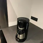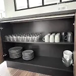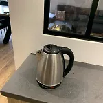 Les clients sont invités à préparer leurs repas dans une cuisine équipée ou à dîner dans un coin repas extérieur. La cuisine est également équipée d'une cafétière/théière électrique, d'un réfrigérateur et de la vaisselle.